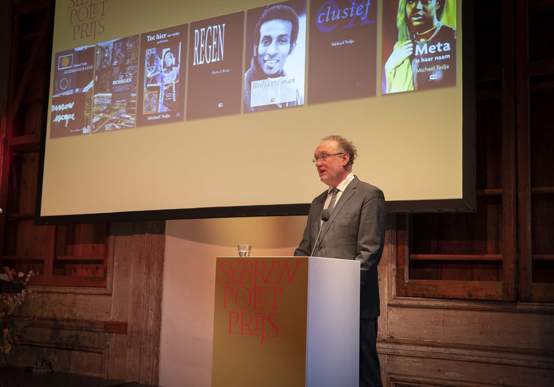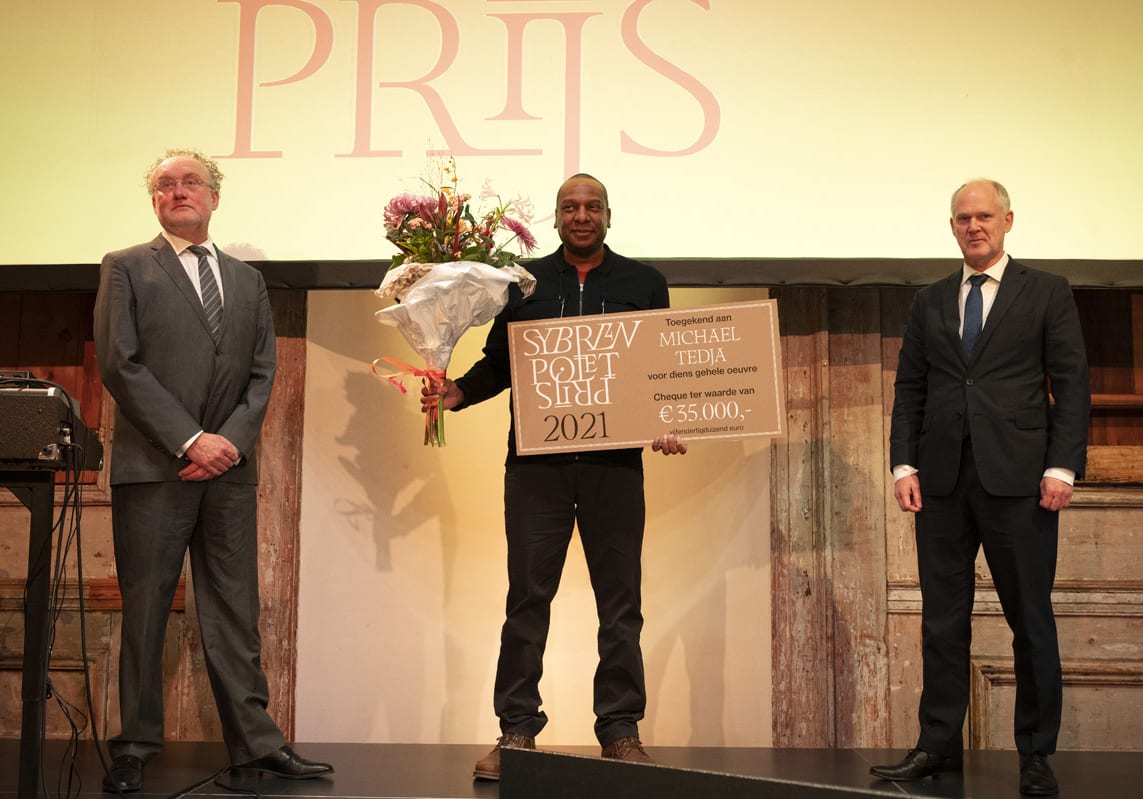 De Sybren Poletprijs 2021 is op donderdag 18 november uitgereikt aan Michael Tedja voor zijn gehele literaire oeuvre. De prijs is overhandigd tijdens een feestelijk programma in Felix Meritis, gepresenteerd door Chris Keulemans. Schrijfster Annelies Verbeke sprak in haar lofrede de volgende woorden: “Michael Tedja omarmt de tegenstrijdigheden. Hij toont dat literair, artistiek werk zowel ijzersterk en gevaarlijk broos is, bouwend en vernietigend, hermetisch en wijds, monomaan en verbindend, onvermoeibaar speels en vervuld van helder verdriet. Wat een geschenk.”