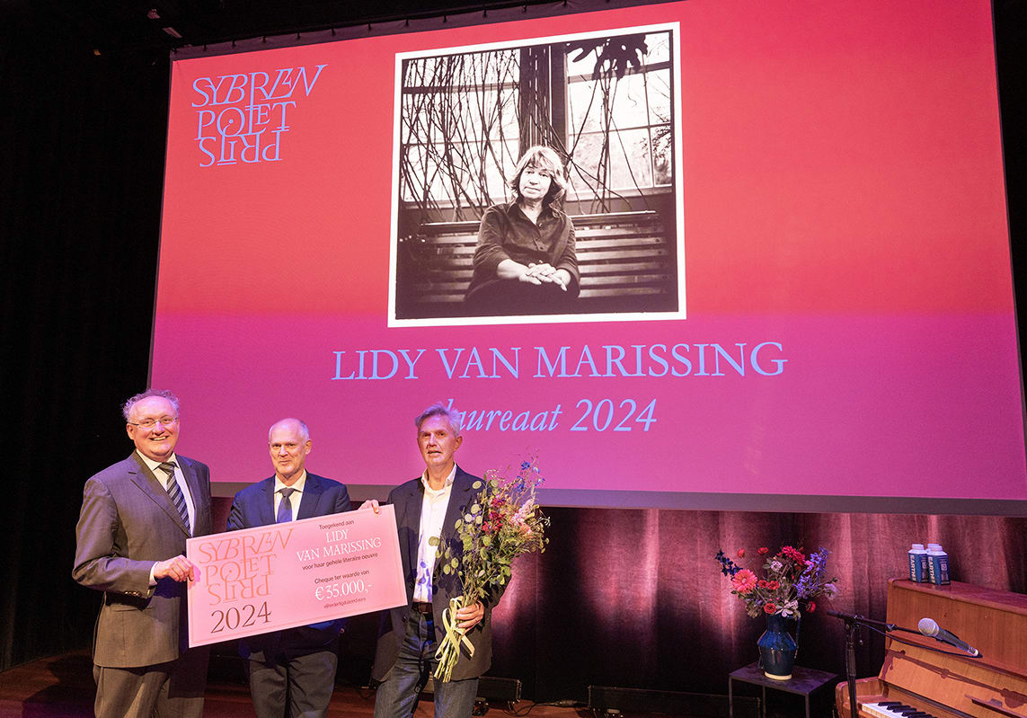 Op woensdag 19 juni is de Sybren Poletprijs 2024 uitgereikt, die in april werd toegekend aan schrijver en dichter Lidy van Marissing. De prijs werd in ontvangst genomen door haar ambassadeur Arjen Mulder tijdens een feestelijk programma in de Brakke Grond, gepresenteerd door Chris Keulemans. Schrijfster Hannah van Binsbergen verklaarde in haar lofrede getiteld ‘Notities bij een moeilijke schrijver’ hoe het werk van Van Marissing haar heeft veranderd.